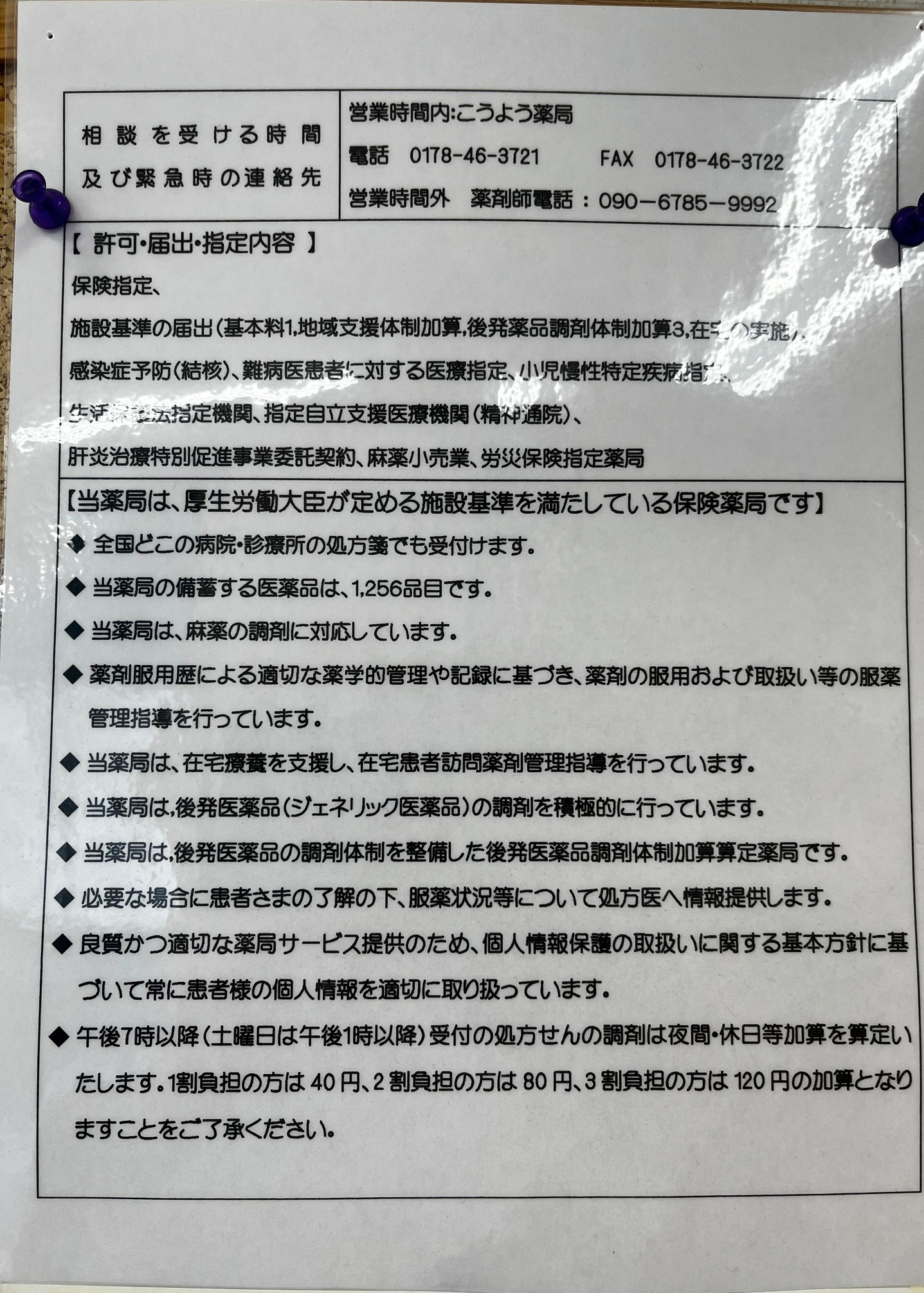 午後7時以降(土曜日は午後1時以降)受付の処方せんの調剤は夜間・休日等加算を算定いたします。